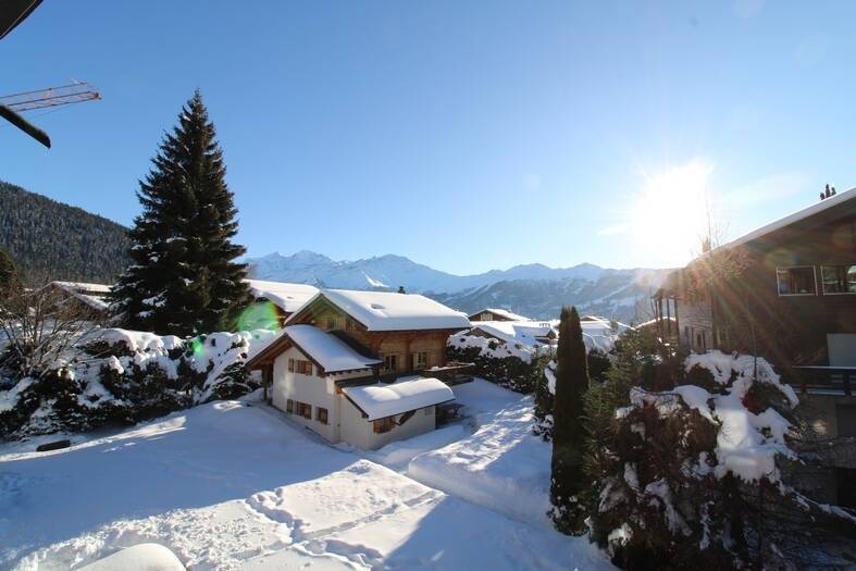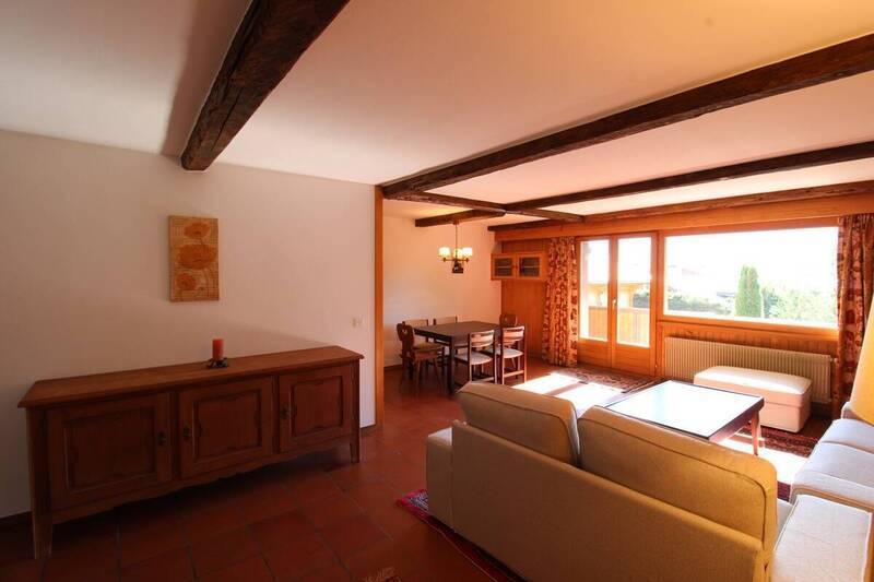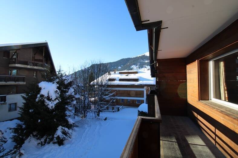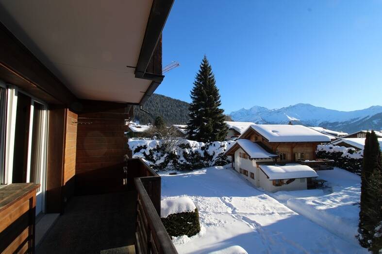 Charming 3-room apartment, close to the center, in a quiet neighborhood. It consists of a spacious living room with south-facing balcony, a dining area, a semi-closed kitchen, 2 bedrooms, 2 shower rooms, an outdoor parking space, and a ski storage room. No pets or smoking allowed!