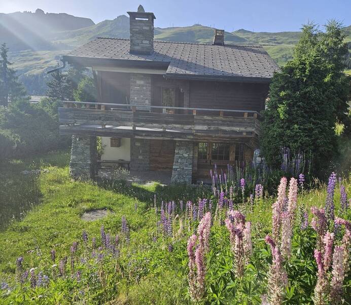 Chalet next to the slope "Le Rouge". Pedestrian access 50m down the snowy path. Sunny and beautiful views. Garage and bus stop next to the chalet. Ground floor: 2 bedrooms with 2 beds, 1 single bedroom (with pull-out bed), 1 shower room, 1 laundry room with washing & drying machine. 1st floor: living room with fireplace and Wi-Fi, South terrace, kitchen with washing machine, 1 double bedroom, 1 bathroom, TV, 1 garage. No pets. (Snow removal is carried out at the customer's request and at their expense.)