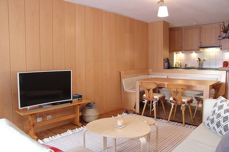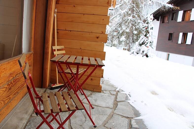 Charming 1-bedroom apartment close to chalet Adrien, on the heights of Verbier. Very quiet and sunny location. This property consists of a double bedroom, a shower room and a kitchen opening onto the living room with fireplace and dining area. A private terrace with a piece of garden is at the disposal. No smoking allowed.