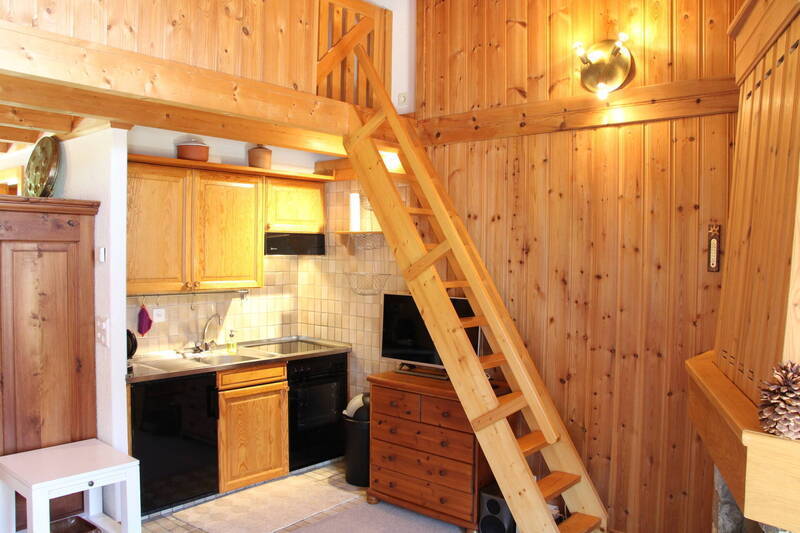 Nice duplex studio located next to the slope Le Rouge and to the after-ski. Close to the bus stop and the shop Brunet. Sunny place. Entrance with dining area, opened kitchen, living room with fireplace, south balcony, mezzanine with a double bed, 1 shower room. Cable TV, wifi. Local à ski, 1 parking place outside. No smoking. no animals allowed. Winter equipment mandatory.