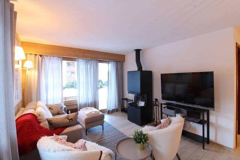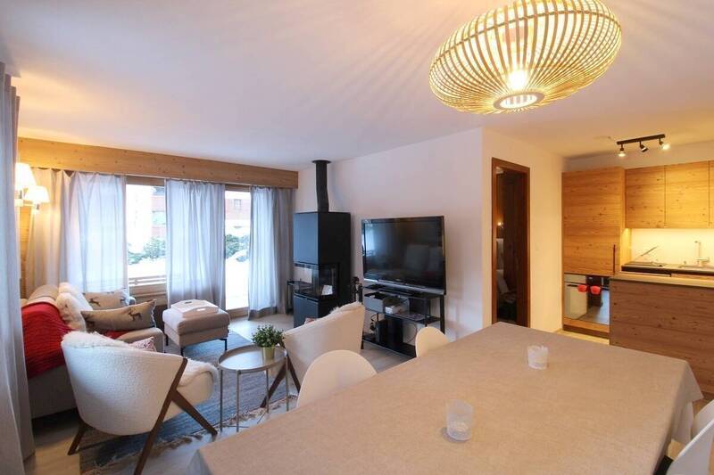 Pleasant and bright apartment on the ground floor of a building located at 200 meters from the ski lifts of Médran. Livingroom with a wood stove and with south-east terrace/garden, 2 bedrooms, a kitchen, 1 shower room and 1 guest WC. TV, Wi-Fi. 1 outside parking place for 2 cars, 1 ski locker