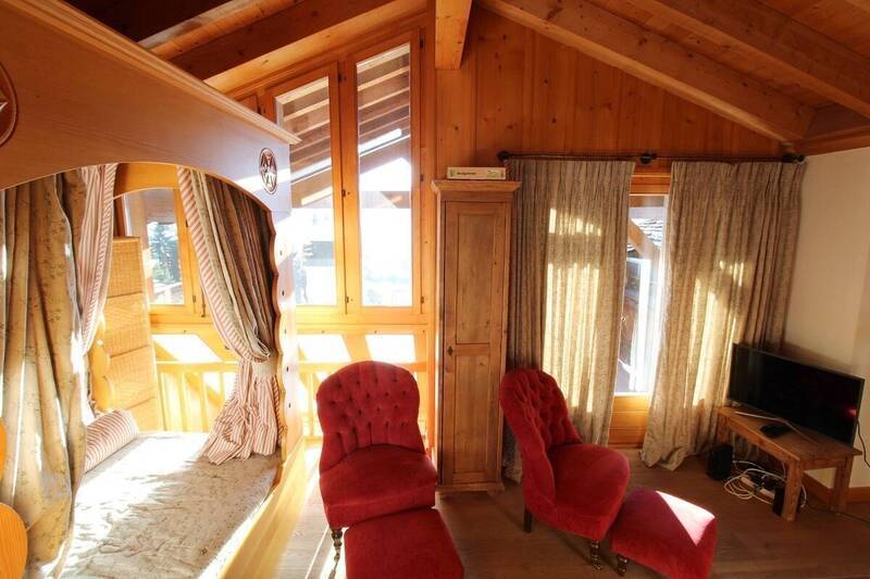 Cosy apartment located close to the shop and to the bus stop of Brunnet. It enjoys a quiet situation, a good sunshine and a superb view. The first floor includes a living room with fireplace (out of order), a dining area and a kitchen bar, 1 single bedroom, 1 shower room. On the upper floor, there is a little TV area with a canopy bed, 1 double bedroom + 1 bedroom with 2 beds, 1 bathroom and 1 shower room. TV, wifi. 1 indoor parking place.