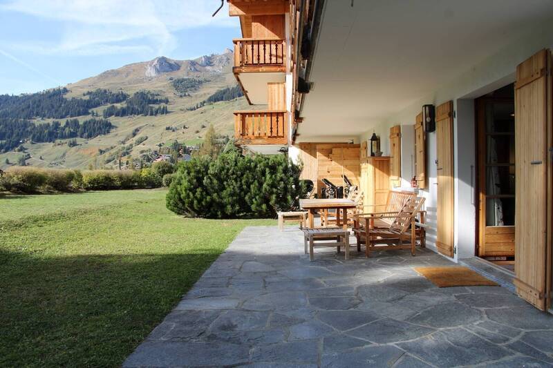 This magnificent flat comprises a living room with fireplace, dining area, open-plan fitted kitchen, 1 bedroom with en-suite bathroom, 2 bedrooms, 2 shower rooms and a magnificent terrace/garden. This flat is rented with a covered parking space, a ski room and WIFI. Smoking and pets are not permitted.