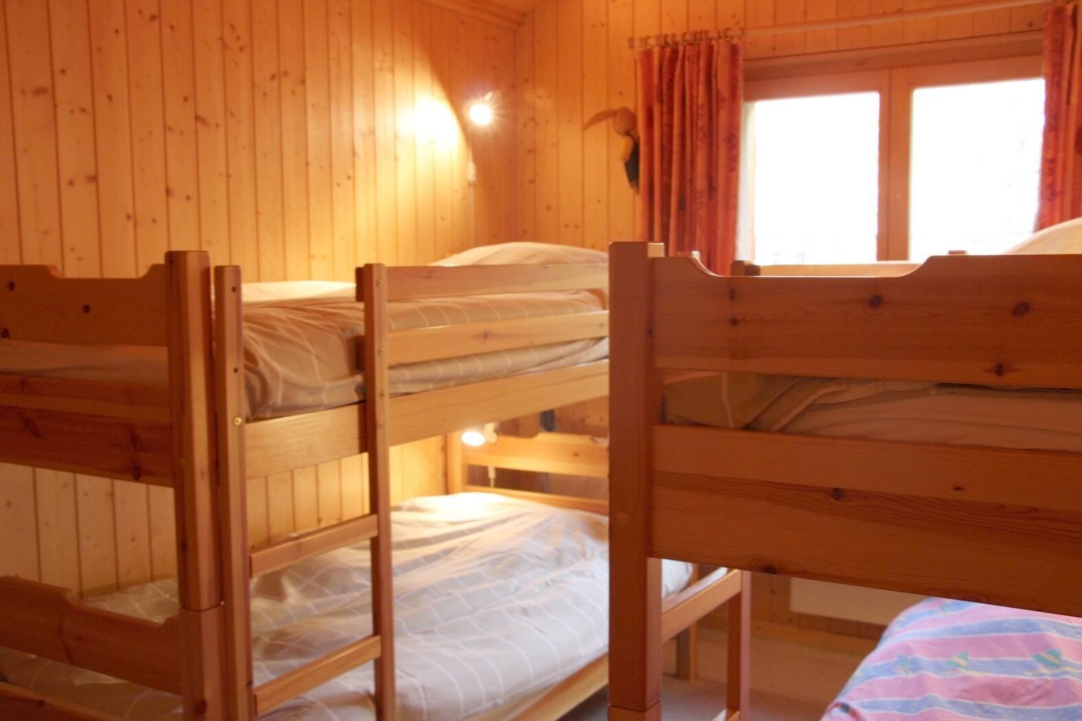 The second floor consists of a children's bedroom with a bunk bed and a double bed, a bathroom, a master bedroom with a fireplace and ensuite bathroom.
