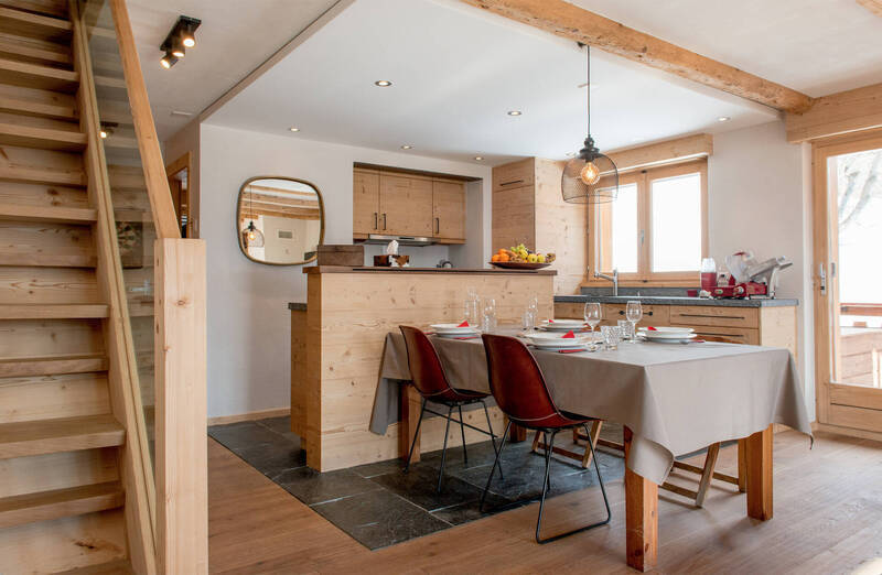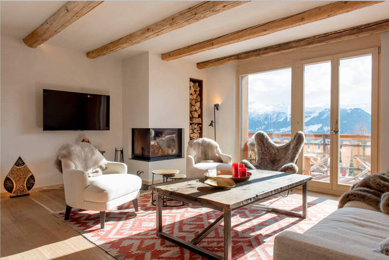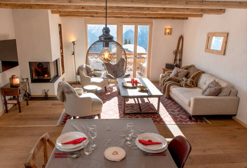 Ideally located in Les Esserts, two minutes away from the ski slope and next to the bus stop. Magnificent 3 bedrooms duplex apartment completely renovated and south facing with a magnificent view on the Combins.