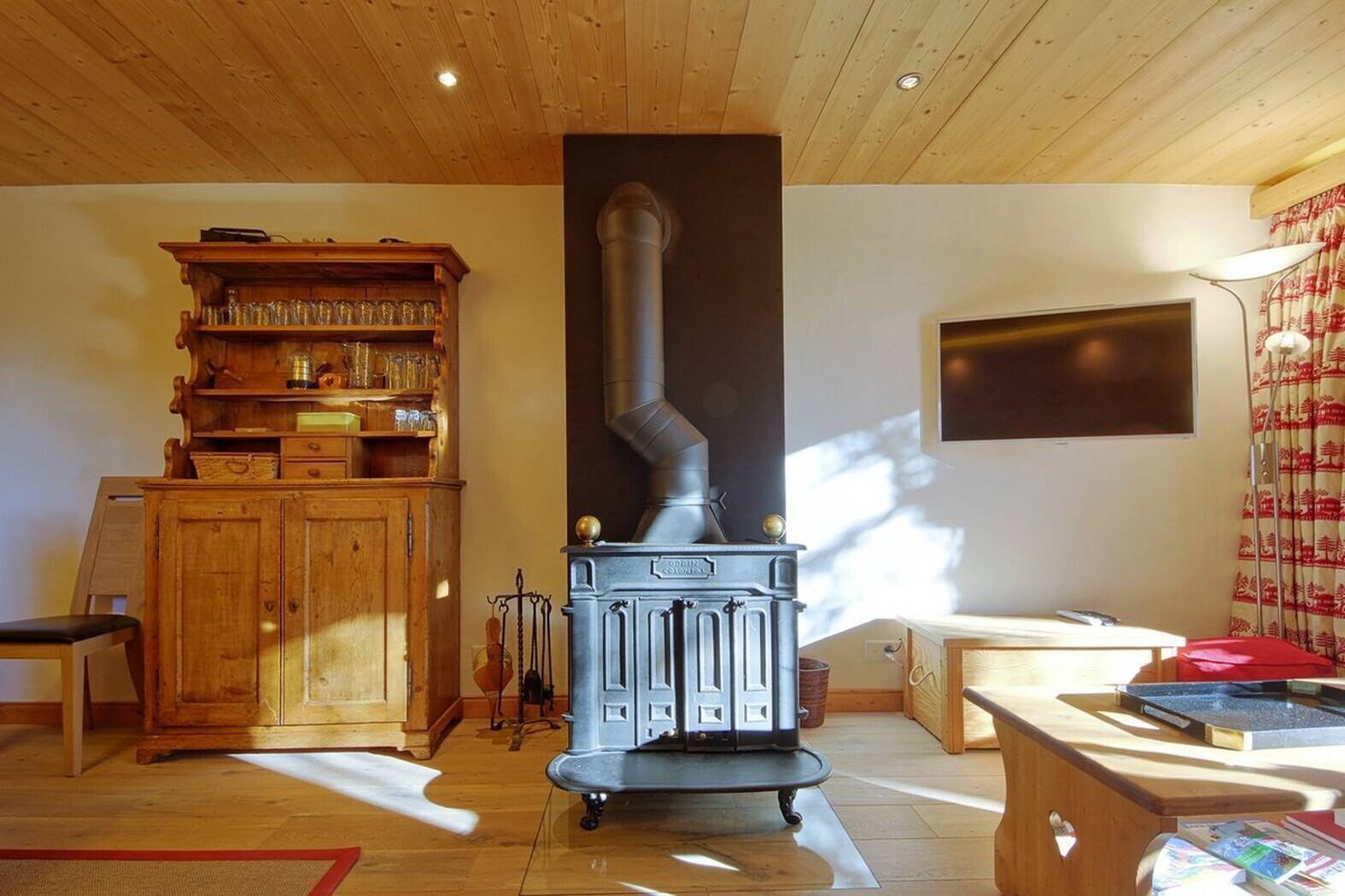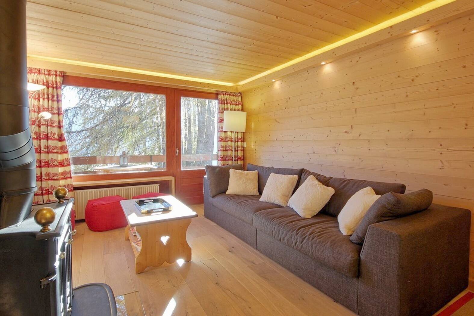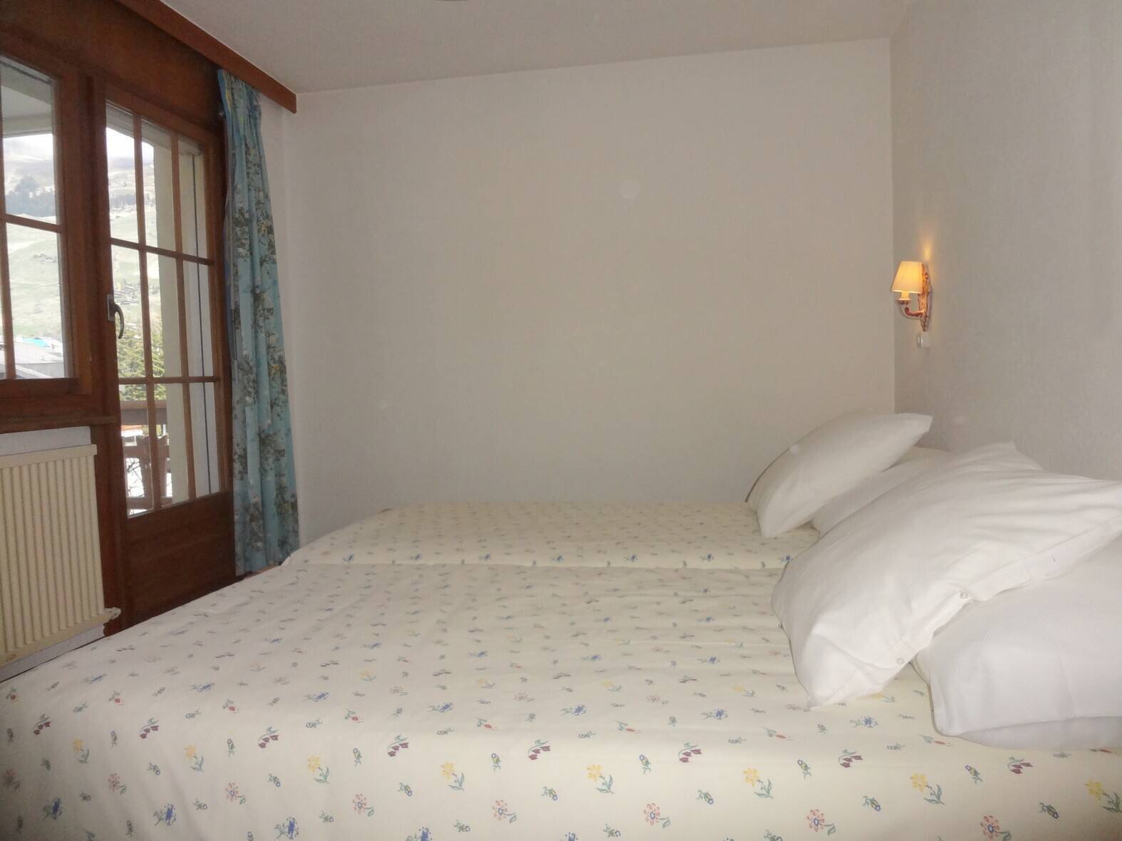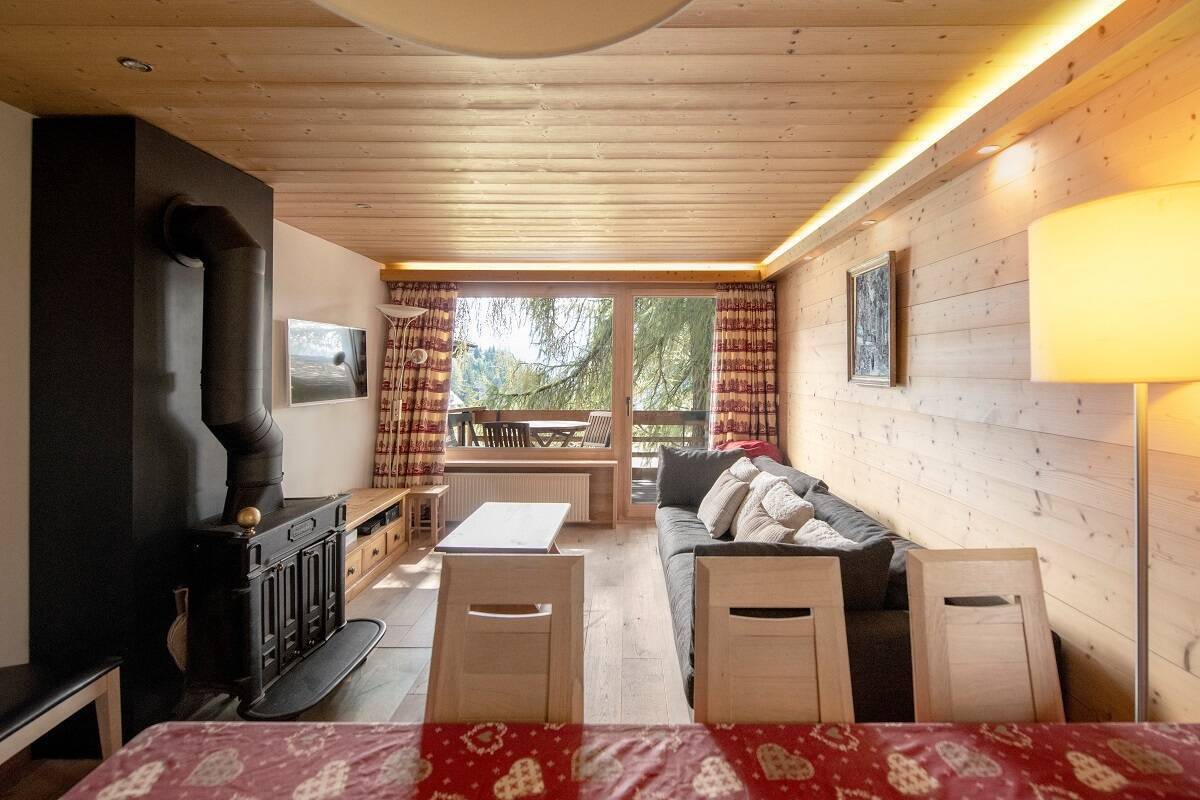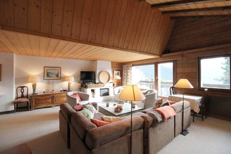 Lovely attic duplex flat close to the Brunet bus stop and Savoleyres. Plenty of sunshine and superb panoramic views! First floor: spacious, bright living room with fireplace (non-usable), fully-equipped kitchen bar, 2 bedrooms with 2 single beds, 1 bathroom, 1 guest WC, south-facing balcony. Attic: 2 bedrooms with 2 beds, 1 bathroom. TV, Wi-Fi. 1 parking space. Smoking and pets not permitted.