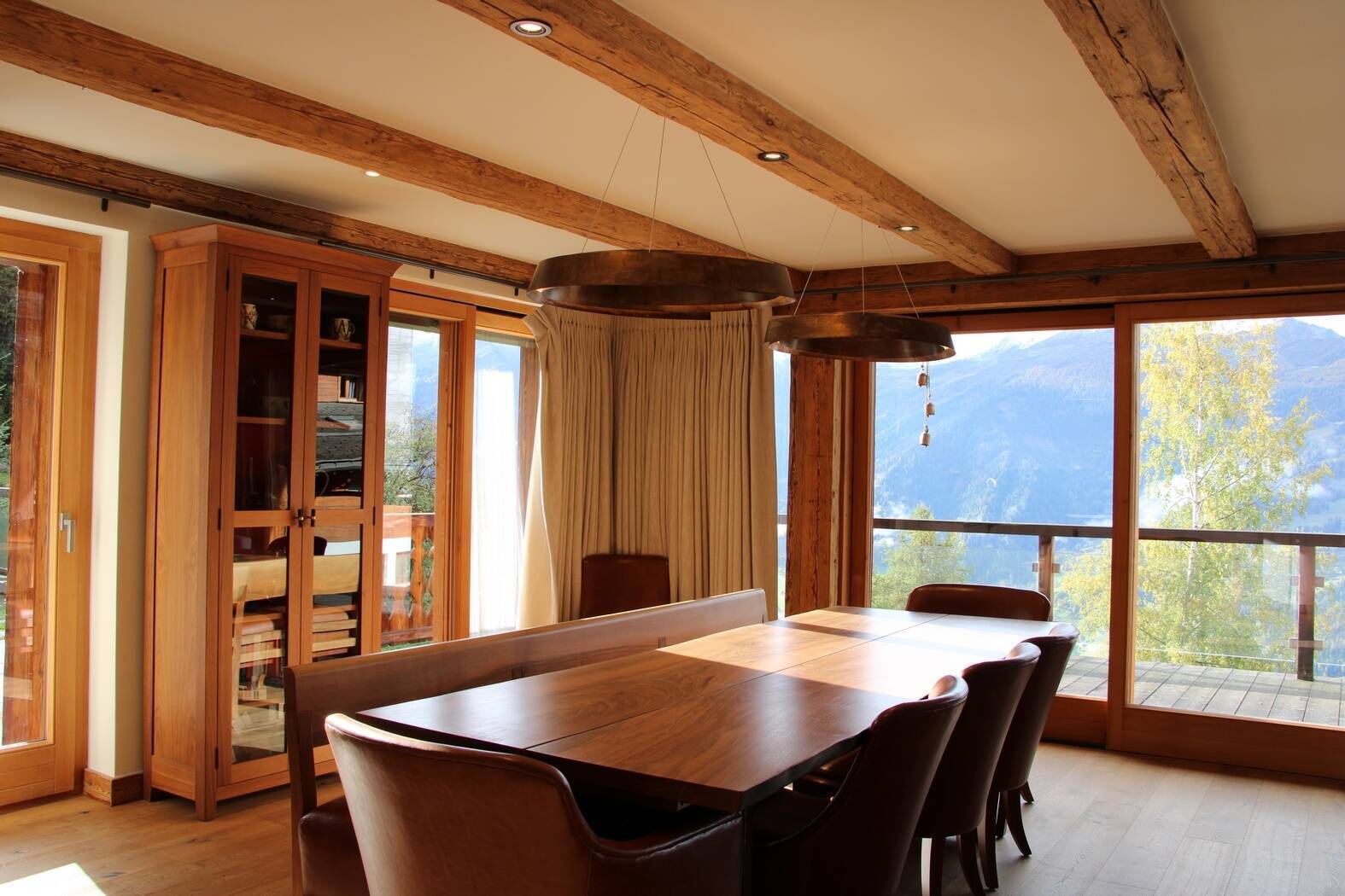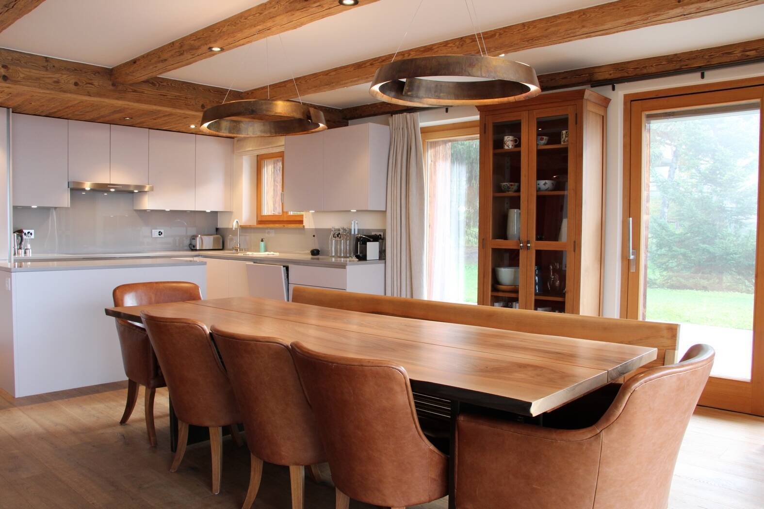 Family chalet very close to the center, enjoying a large garden and a beautiful view. On the ground floor, there are the living room with fireplace and a boudoir with a sofa bed, a dining room and a simple but well equipped kitchen. It also includes 1 single bedroom, 1 bedroom with 2 beds, 1 shower room. On the 1st floor there are 1 single bedroom, 1 bedroom with 2 beds, 2 double bedrooms and 2 shower rooms. 2 cable TV's, WIFI. Waching/drying machine. 3 outside parking places.