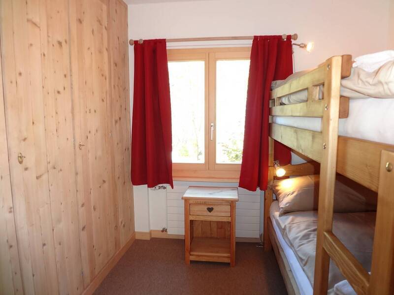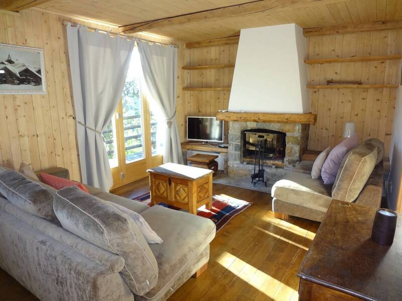 Family chalet recently renovated. Living room with fireplace, dining space and balcony with a wonderful panoramic view. Open equipped kitchen, 1 double bedroom, 1 twin bedroom, 1 bedroom with bunk beds, 1 bathroom and 1 shower room. 1 parking place outside and 1 in the garage Arcades, 100 meters away. Cable TV & Wireless. No pets allowed!