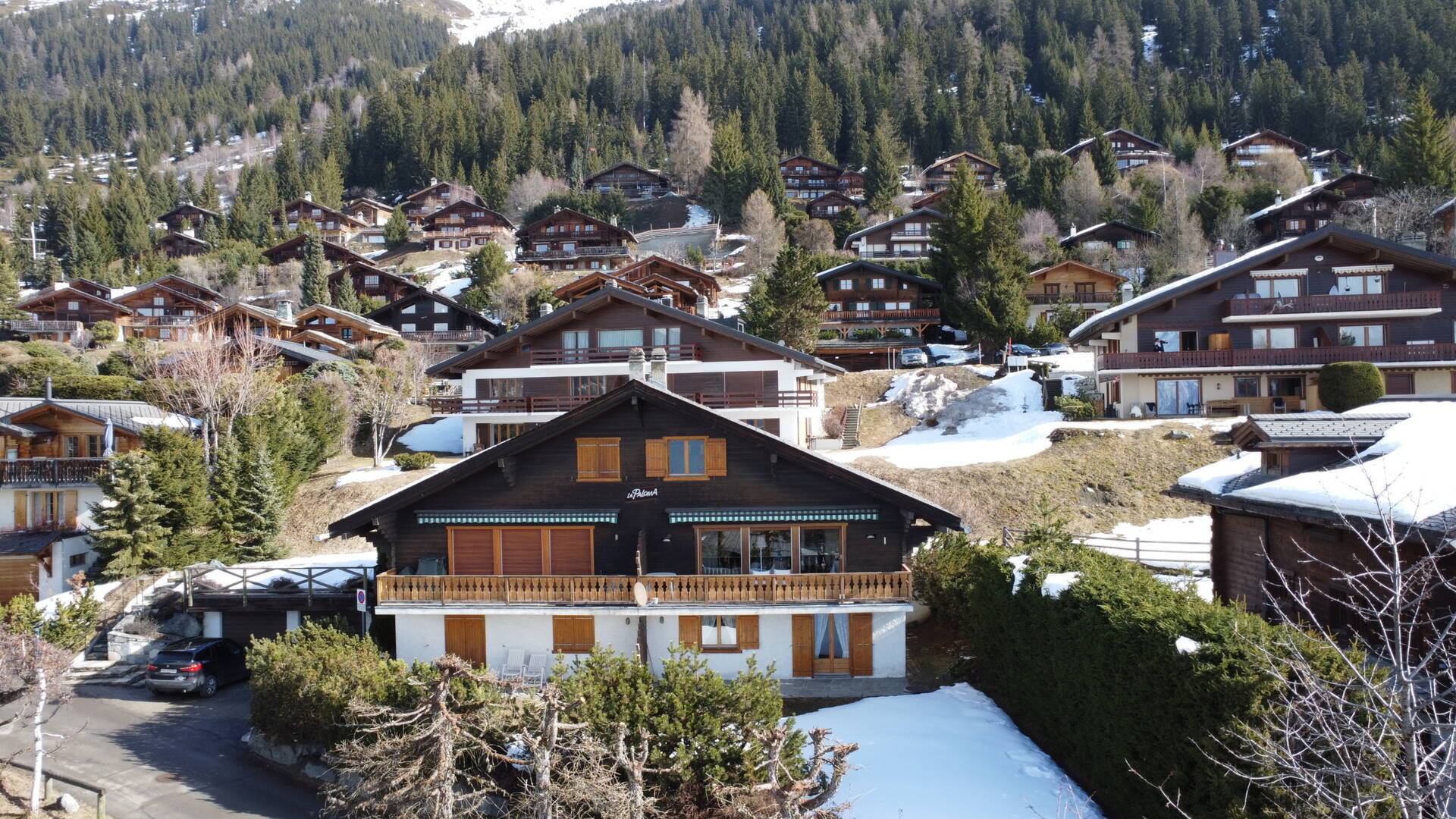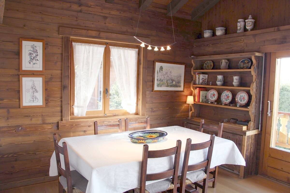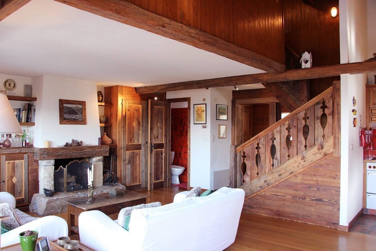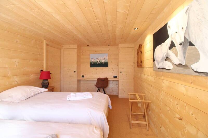 Chalet next to the slope "Le Rouge". Pedestrian access 50m down the snowy path. Sunny and beautiful views. Garage and bus stop next to the chalet. Ground floor: 2 bedrooms with 2 beds, 1 single bedroom (with pull-out bed), 1 shower room, 1 laundry room with washing & drying machine. 1st floor: living room with fireplace and Wi-Fi, South terrace, kitchen with washing machine, 1 double bedroom, 1 bathroom, TV, 1 garage. No pets. (Snow removal is carried out at the customer's request and at their expense.)