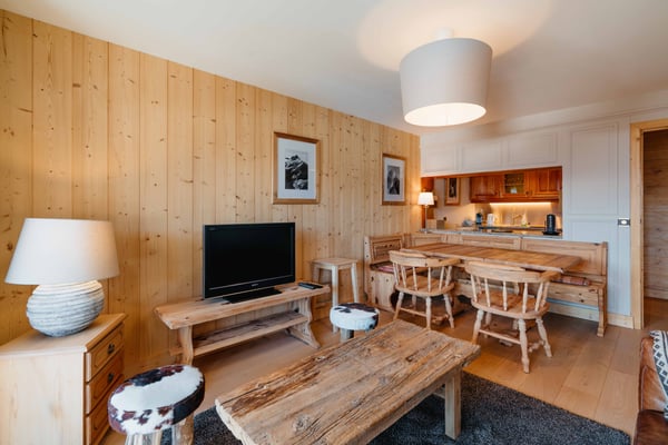 L’appartement comprend 1 chambre principale, une autre petite chambre créée pour accueillir 2 personnes supplémentaires et une salle de bains avec baignoire. La chambre principale donne sur le balcon. Un garage box est vendu avec l'appartement.