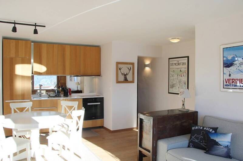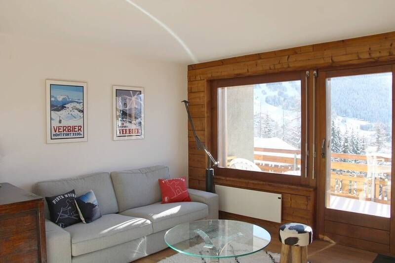 Charmant appartement dans un petit immeuble proche de Savoleyres, calme, ensoleillé et magnifique vue. Séjour avec cheminée et balcon sud, coin à manger, cuisine-bar équipée, 1 chambre double, 1 salle de bains, 1 chambre a 2 lits single et salle de douche. TV câblée. Wifi. . 1 place de parc extérieure. PAS D’ANIMAUX. Non fumeur.