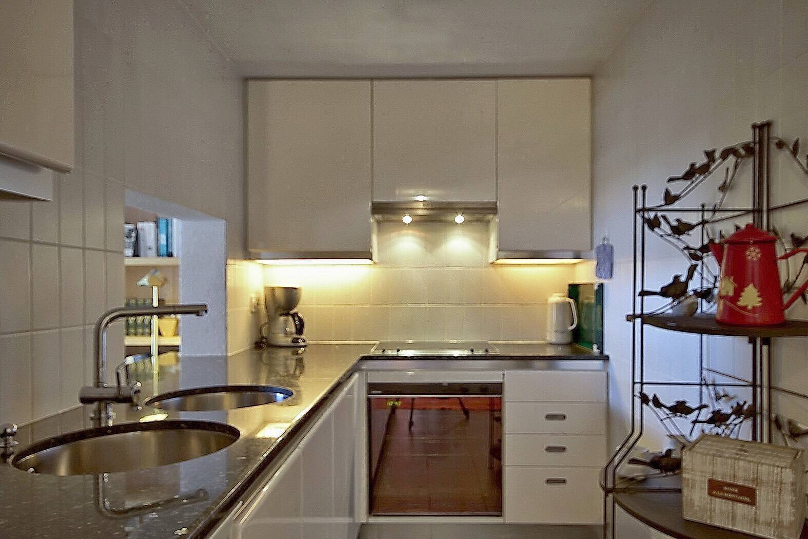Il se compose d’un séjour avec cheminée et balcon, d’un coin à manger et d’une cuisine équipée ouvert.