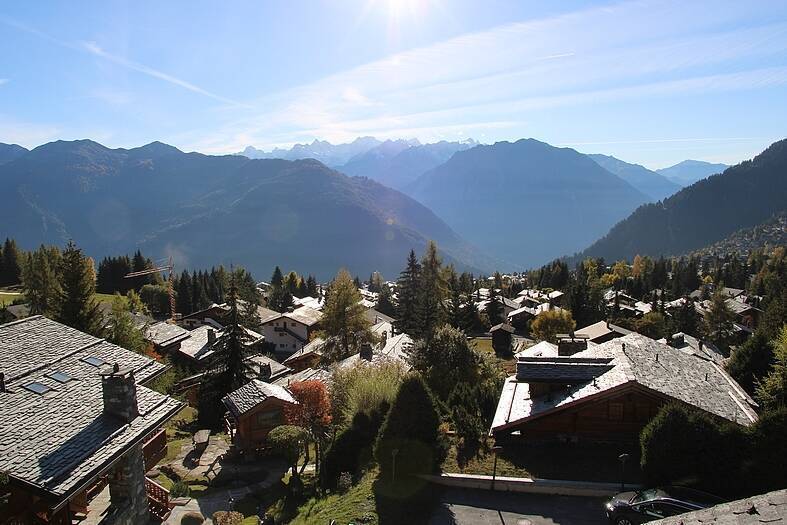 Très bel appartement à proximité de la piste du Rouge, de l'arrêt de bus et du magasin Brunnet. Calme, ensoleillé et superbe vue. Séjour avec cheminée et vaste balcon sud, cuisine ouverte avec lave-vaisselle et micro-ondes, grand coin à manger. L'appartement dispose d'une chambre double avec TV, salle de bains ensuite et jardinet à l'ouest, d'une chambre à 2 lits et salle de douche ensuite, de deux chambres à 2 lits simples, d'une salle de bains avec baignoire + douche ainsi que d'un WC visiteurs. TV câblée, wifi, dvd, hifi, wireless. 2 places de parc dans le garage.