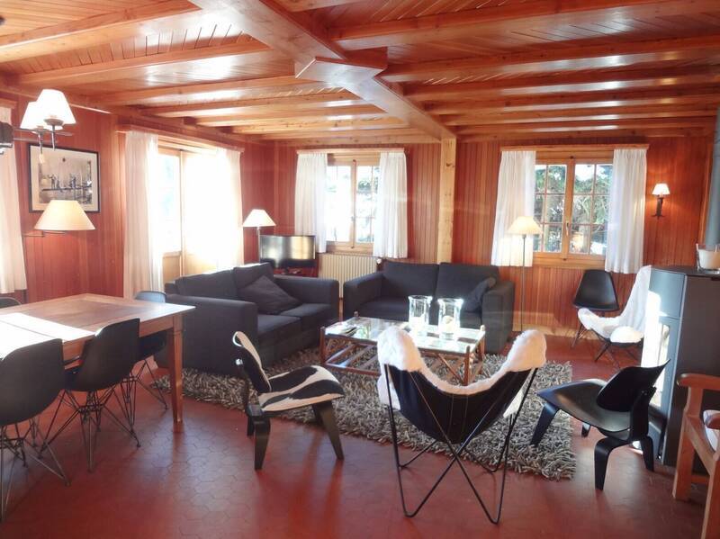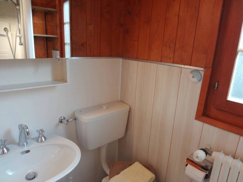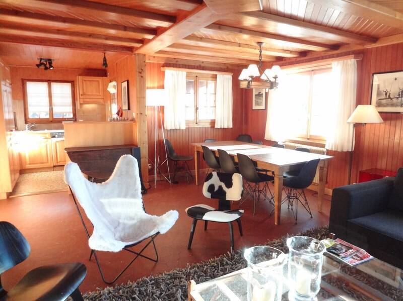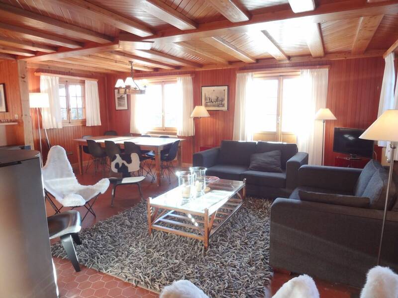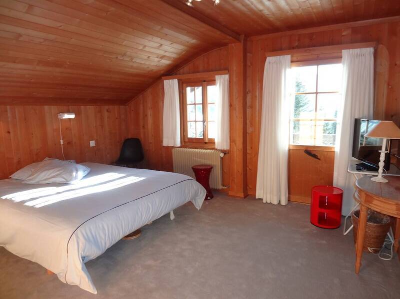 Etage d'un chalet voisin du Hameau, au calme, bon ensoleillement et jolie vue. Accès skis aux pieds à la piste Le rouge par une piste qui passe juste derrière le chalet. Etage: séjour avec poêle à bois & terrasse sud, cuisine avec lave-vaisselle + micro-ondes, 1 salle de douche. Combles : 2 chambre doubles, 2 chambres à 2 lits, 1 salle de bains. TV câblée. Wireless. Lave-linge. 2 places de parc extérieures. Appartement non-fumeurs. Pas d'animaux.