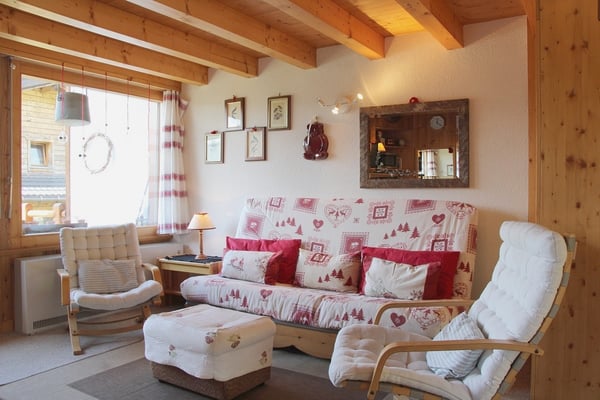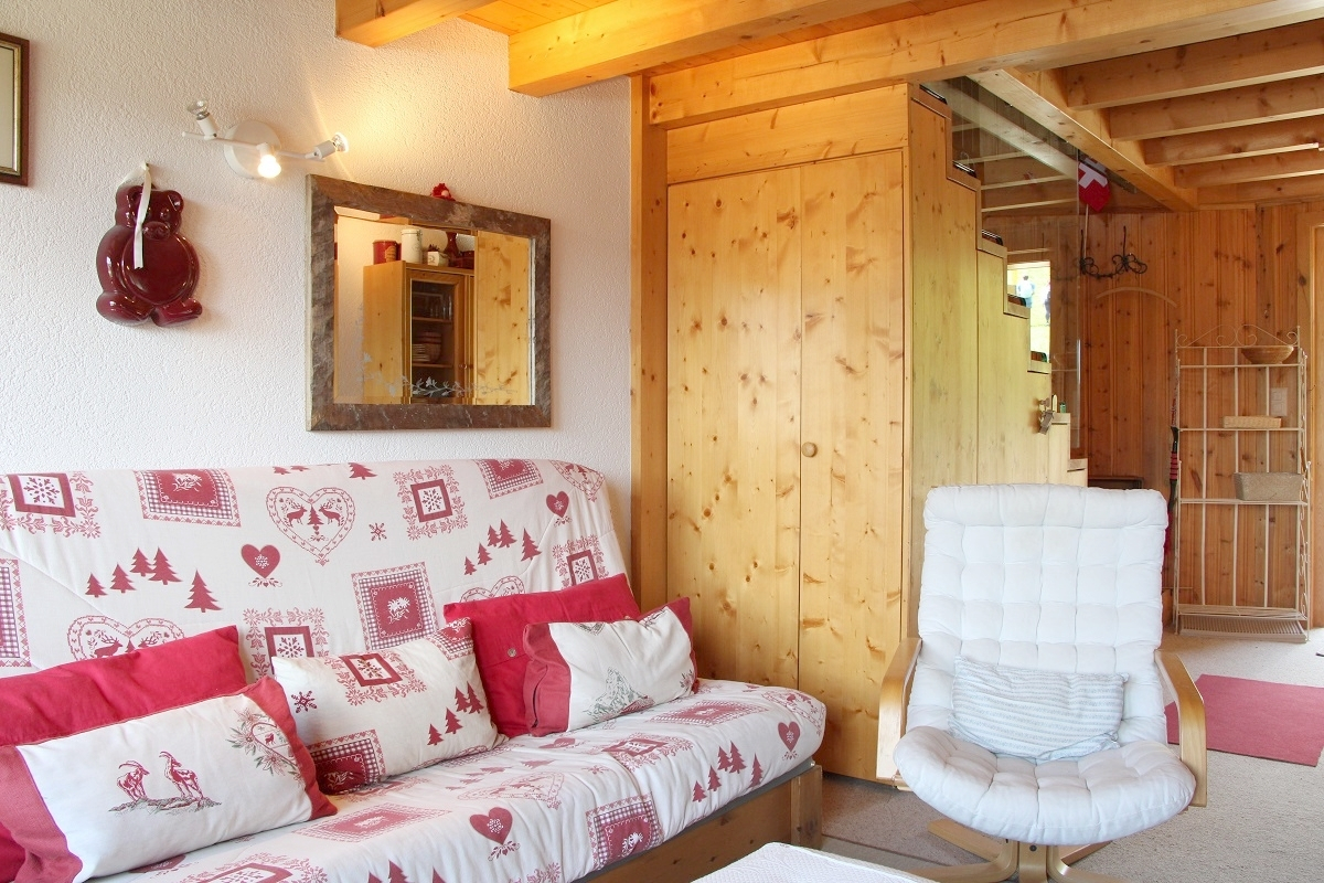 Beau studio en duplex, situé au pied de la piste de ski Le Rouge et de l'after-ski. Proche de l'arrêt de bus et du magasin Brunet. Bon ensoleillement. Entrée avec coin à manger, séjour, cuisine ouverte, balcon sud, mezzanine avec lit double, 1 salle de douche. TV, wifi. Local à ski, 1 place de parc à l'extérieur. Non fumeurs. Equipement d'hiver obligatoire.